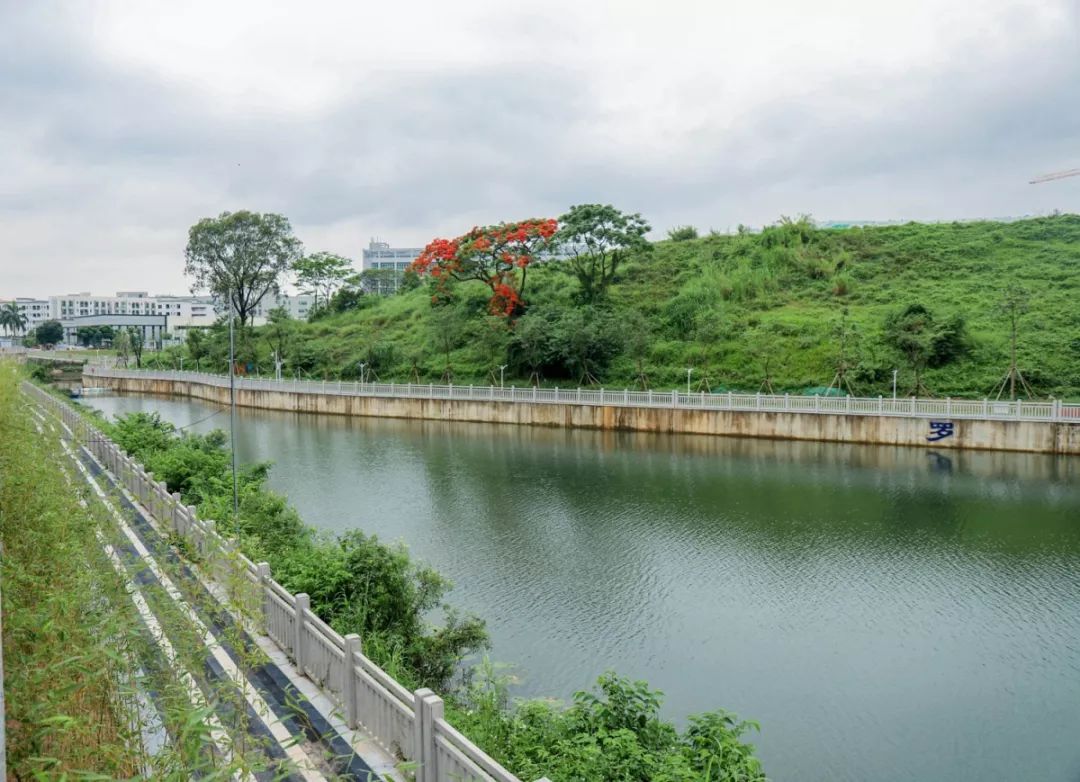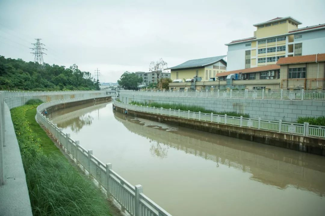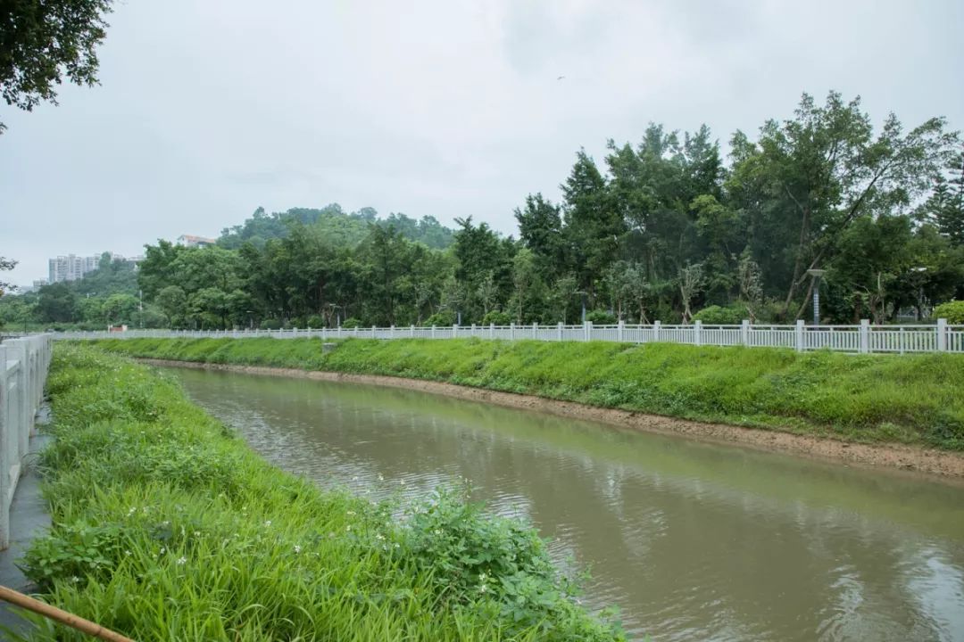 其中上游段在穿过广田路后向西汇入老虎坑水,作为老虎坑水一级支流,河长3.96km,控制集雨面积2.94k㎡;