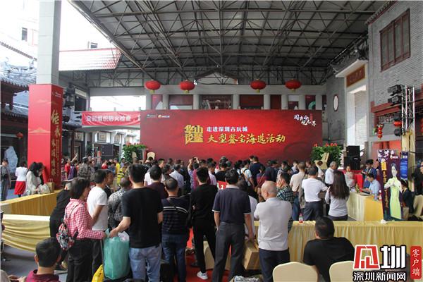 当天上午,深圳古玩城和《华山论鉴》栏目的工作人员已在场内准备就绪,场外前来鉴宝的人群已排起了长队。记者在现场了解到,有的藏友来自深圳本地,有的藏友则是特定从外地慕名而来,可谓少长咸集,南北相聚。活动正式开始之后,不仅场内聚满了买票进场鉴定的藏友们,场外也站满了前来观看的游客。鉴宝现场,藏友们不仅可以向专家请教,给藏品验定真伪,若是藏品被现场鉴定为真品,还有机会参与拍卖。