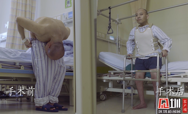 见圳客户端·深圳新闻网2019年12月15日讯(见圳客户端、深圳新闻网记者 刘梦婷 通讯员 杨柳)46岁的李华因患强直性脊柱炎导致身体弯曲将近180度,历经4次高风险、高难度手术,李华终于可以挺直脊梁,可以再次平视这个世界。