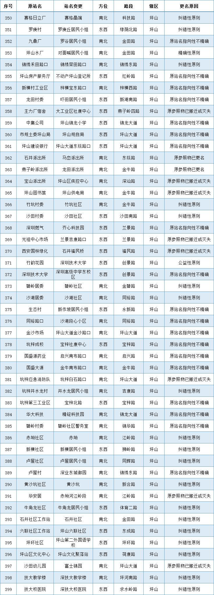 坪山都有哪些站台更名了