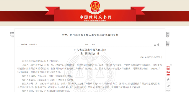 今年5月19日,中国裁判文书网的一纸判决书曝光了大疆公司内部腐败的细节。《吕龙、伊丹非国家工作人员受贿二审刑事判决书》显示,2016—2018年,大疆公司原采购经理吕龙、伊丹两人相互配合,利用增加采购额给予返点的模式受贿362.67万元。最终,吕龙、伊丹因犯非国家工作人员受贿罪,分别被判处有期徒刑五年和一年六个月。