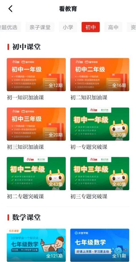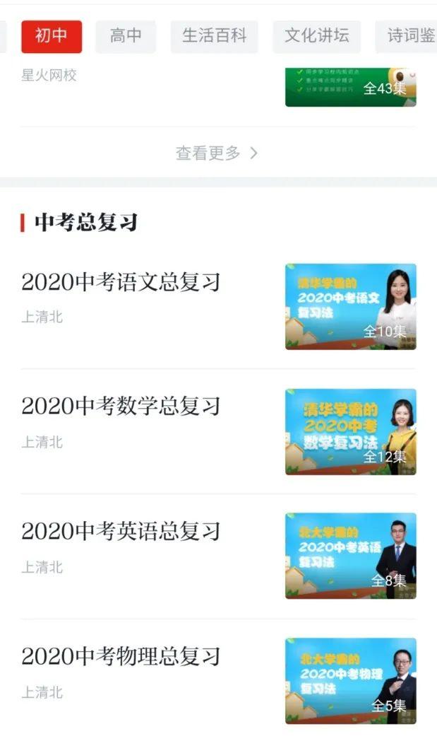 在这里,想要特别介绍的就是“小学”“初中”“高中”这三个栏目啦,都是名校的线上网课哦!