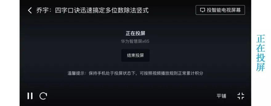 担心手机屏幕小对孩子视力不好?教大家一招!视频播放过程中,点击屏幕右上角“投智能电视屏幕”,或者点击投屏小图标,即可轻松实现投屏观看啦!