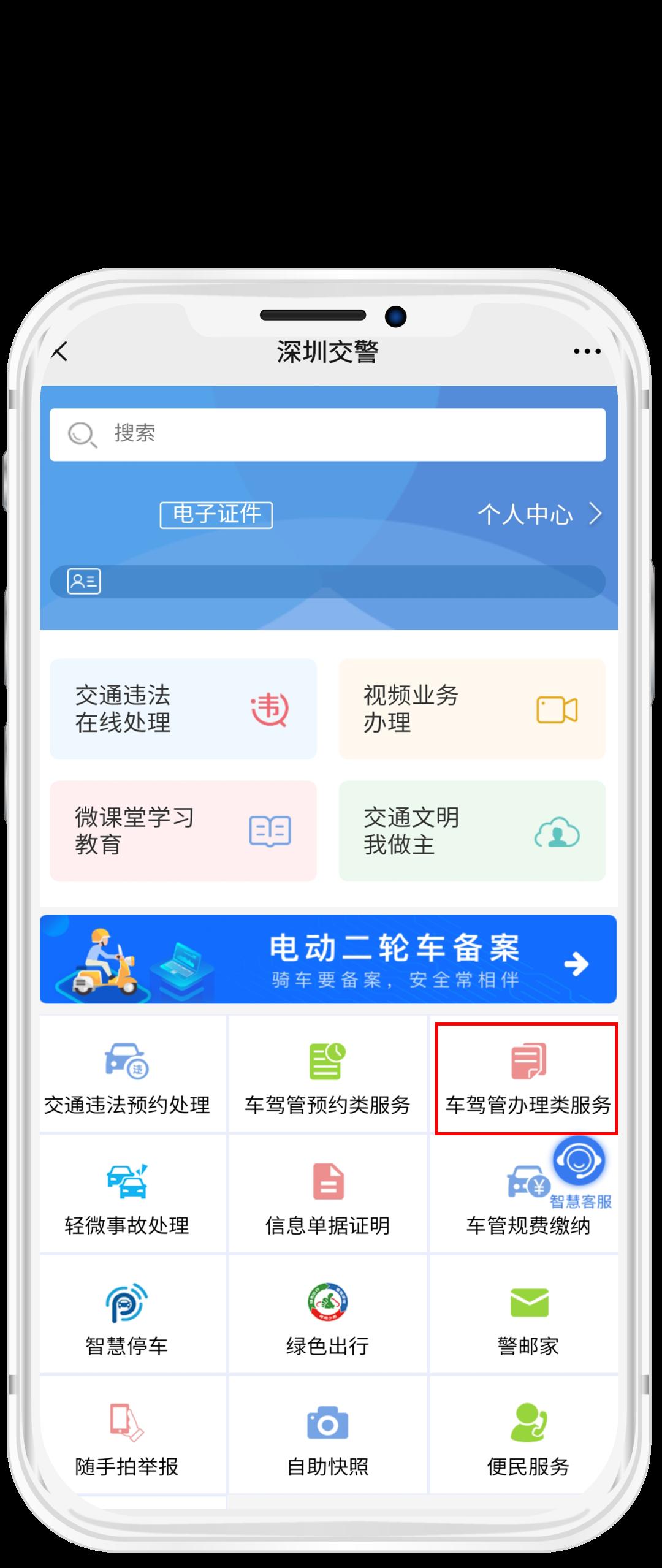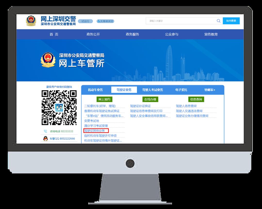 通过深圳交警网上车管所(szjj.sz.gov.cn/CGZL)或“深圳车管所”微信公众号星级用户平台,在驾驶证预约类业务中选择“驾驶证其他业务”在线预约后,按时前往车管所办理即可。