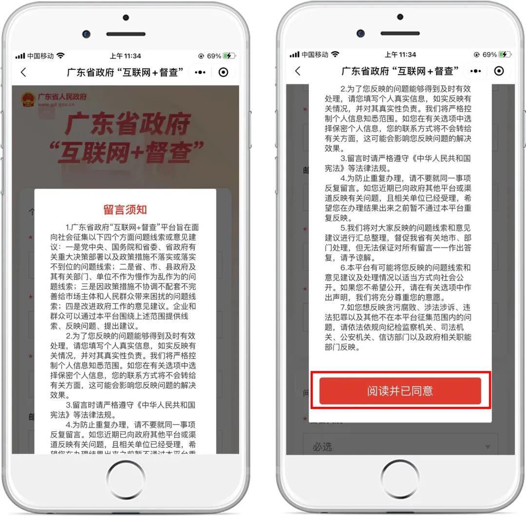 阅读留言须知后,点击“阅读并已同意”。