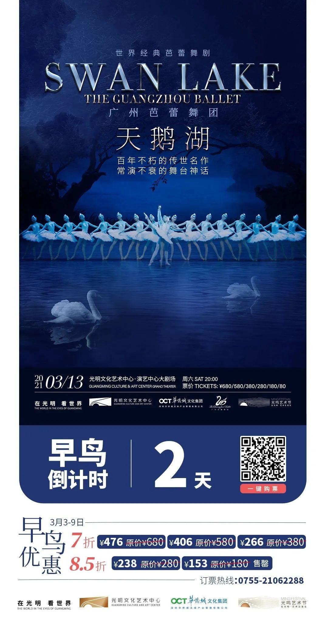 光明文化艺术中心「光鸣艺术节」就要开幕了!开幕演出“世界经典芭蕾舞剧《天鹅湖》”已经开票!购票早鸟优惠倒计时还有2天!!!这是最最最优惠的票价!!!小明等你一同享受这百年不朽的传世名作,常演不衰的舞台神话!
