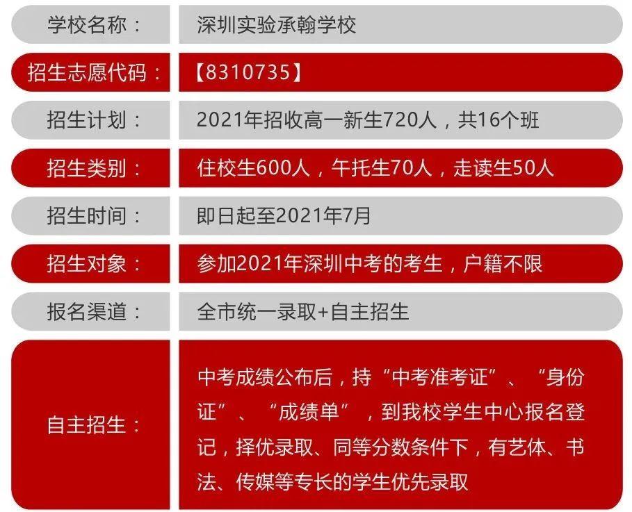 深圳实验承翰学校(招生志愿代码:8310735)高中部面向深圳市中考学生招生。
