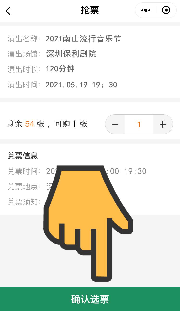 ⑤摇中票后,立即点击【确认选票】及【支付】按钮(支付0元),中途退出选票及支付页面将无法再进行该场演出的抢票