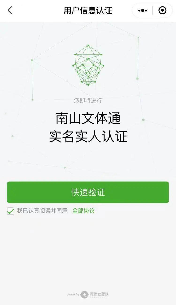 ①点击下方小程序卡片,进入“南山文体通”小程序