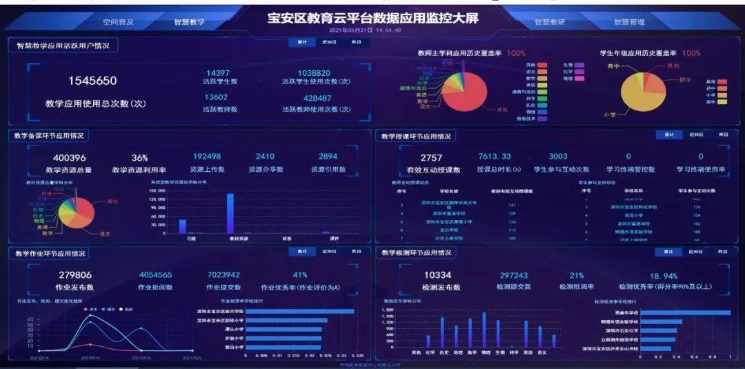 疫情期间,宝安利用本地化部署的资源平台,服务线上教学、网络教研、特色活动,5700多名一线教师参与,发布17万多个导学案例、学生提交导学429万多个。