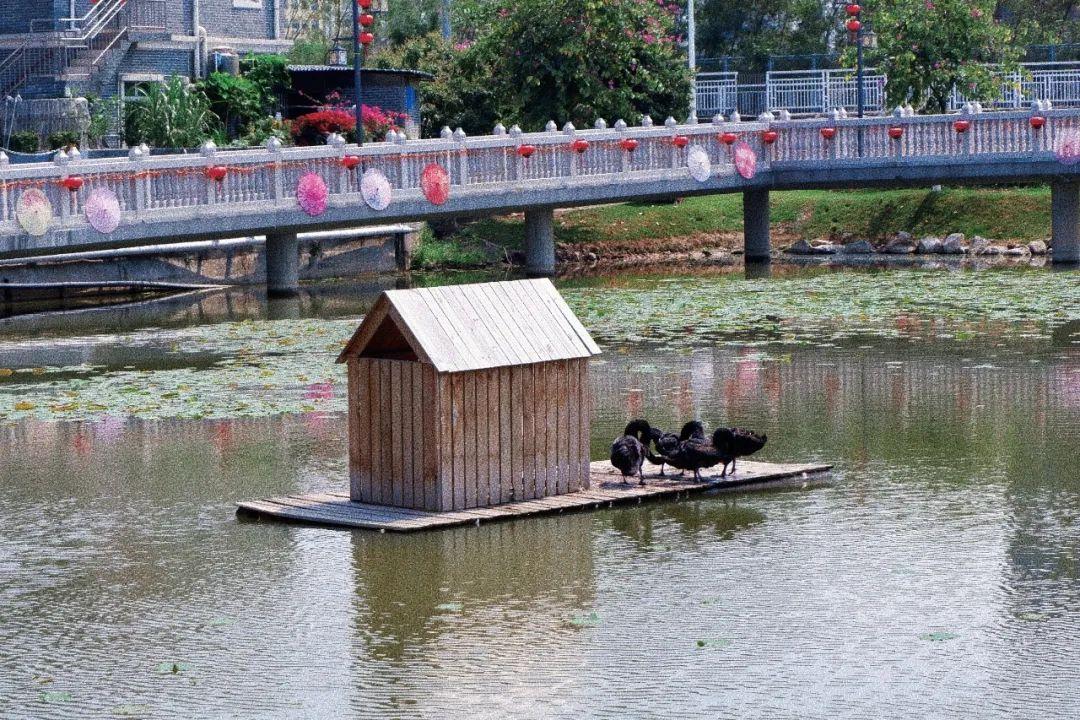 时光流转,曾经是商贸交通要道的永兴桥成了古迹,桥下两河交汇处今变成了一片小湖泊,风光不再,风景依旧很美。