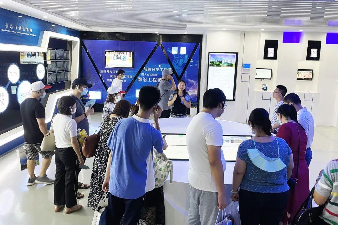 最后一站,家长和同学们来到了最期待的学生宿舍,学校现设有12000张床位,无线WI-FI全覆盖,所有宿舍配有独立的卫生间、浴室;24小时太阳能热水供应,满足你随时冲凉的愿望!学生宿舍依山而建,住得高的同学还能喜提“海景房”和“山景房”。
