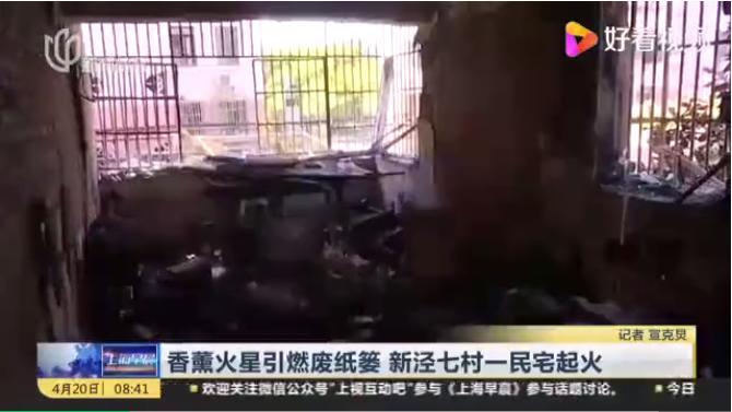4月18日下午,上海市长宁区天山西路一处住宅内,两名女租客点燃香薰后未完全掐灭,引燃纸篓内的废纸导致火灾。所幸,两人第一时间从屋内逃生,火灾未造成人员伤亡。