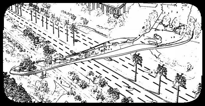 T6过街人行天桥横跨已建成的滨海大道隧道U型槽入口段,是经由滨海大道进入前海的门户性天桥。在功能定位上,T6天桥是前海合作区慢行交通系统的重要组成部分,是保障高密度住宅区连接商业办公地块及桂湾公园,实现安全便捷过街的重要交通设施。桂湾公园作为城市公共空间体系的重要组成部分,使T6拥有优越的景观视野。T6连接桂湾公园与住宅区及学校之间的16m(离地高度)平台,是居民与学校师生安全过街的重要慢行设施。