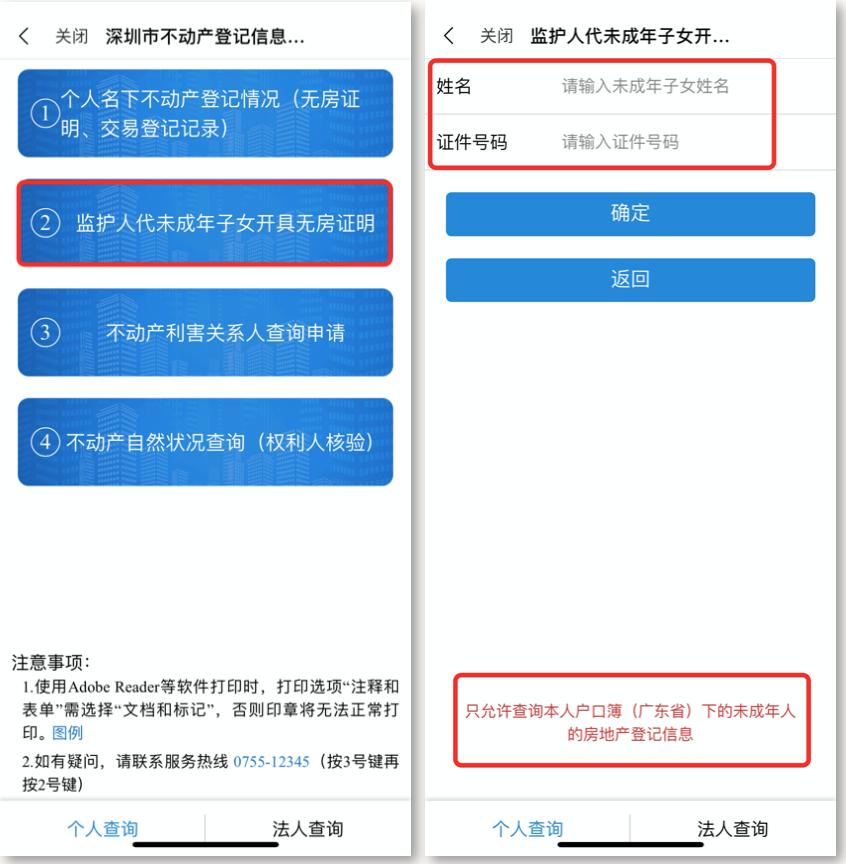 线上为子女代开无房证明,需保证监护人与未成年子女在广东省内同一家庭户口簿下;暂时还不支持广东省内集体户口、非广东省户籍的监护人线上代开无房证明。