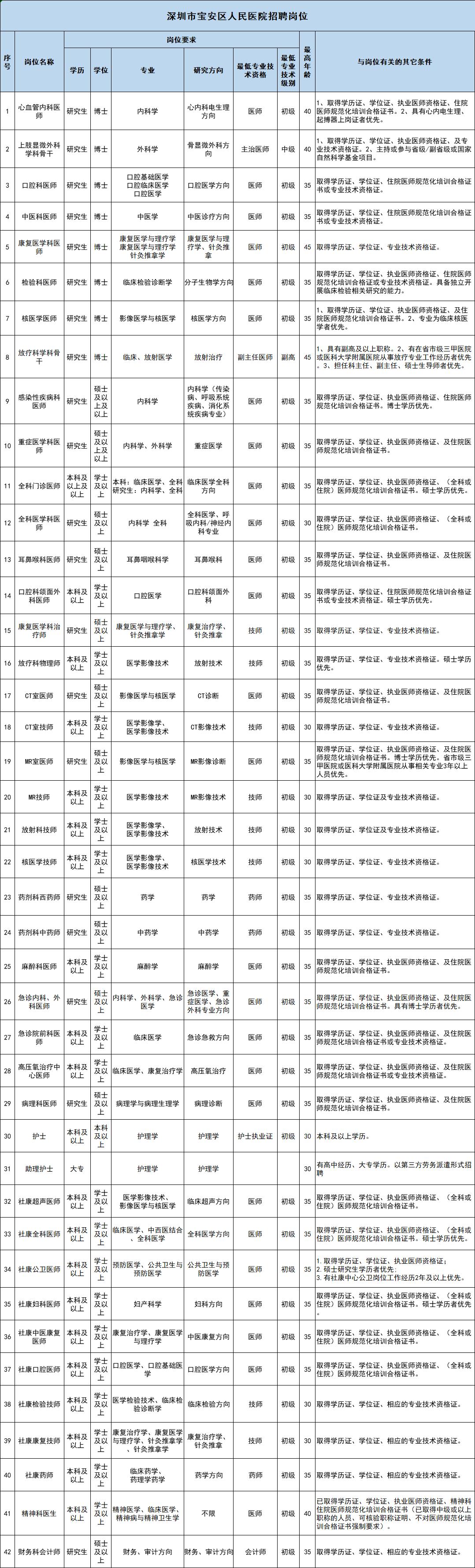 地址:深圳市宝安区龙井二路 118 号宝安人民医院(集团)第一人民医院(宝安区人民医院)人力资源管理中心