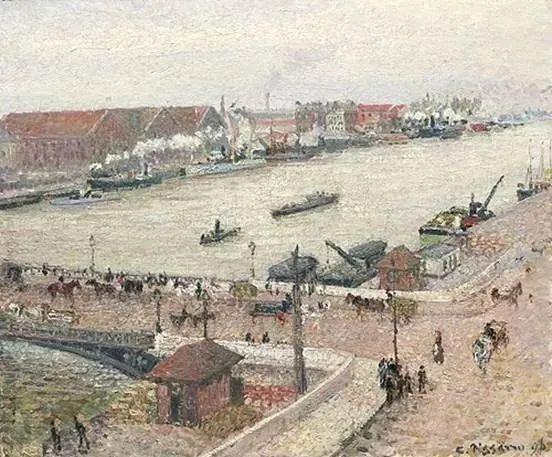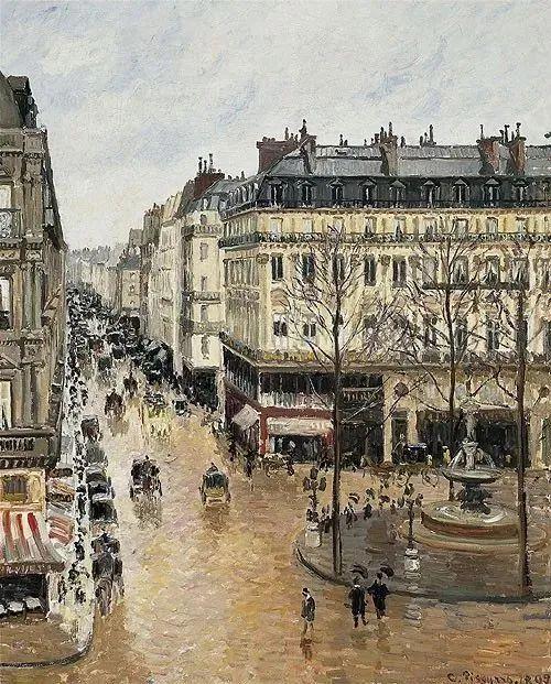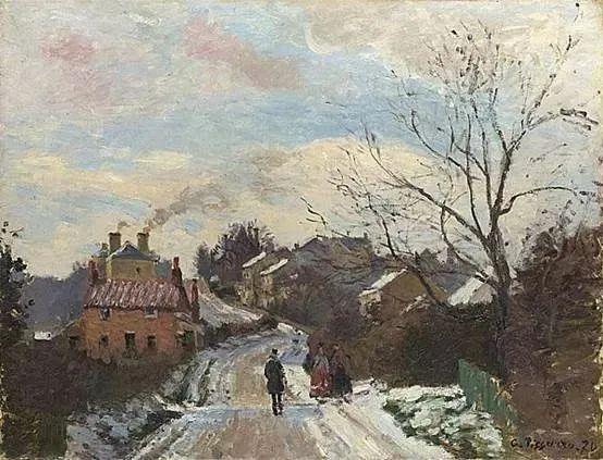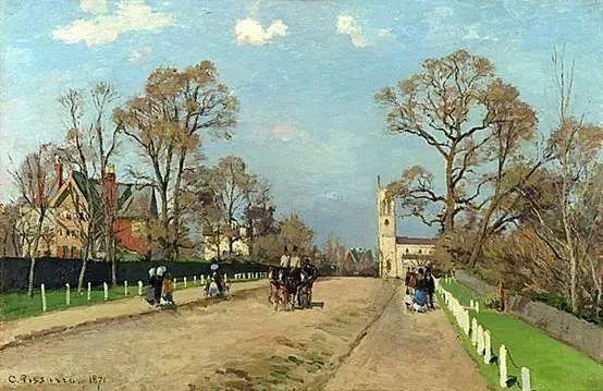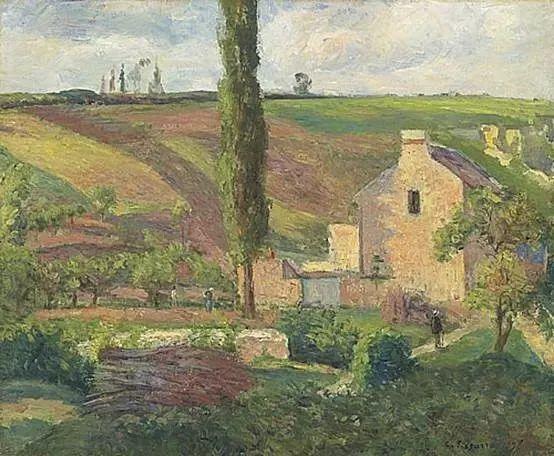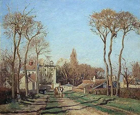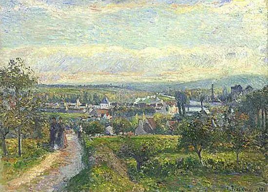 毕沙罗思想激进,有着空想社会主义的色彩,把绘画上的革新与思想的自由解放相组合。毕沙罗的画风充满着农民的质朴,他热爱乡野土地。绘画题材依旧是农村风光、城市街景。
