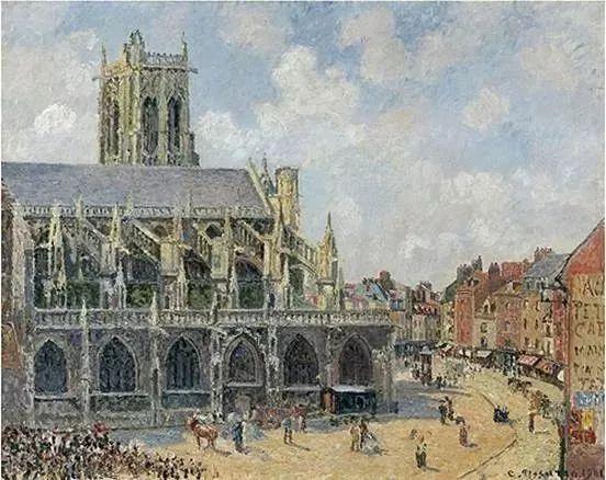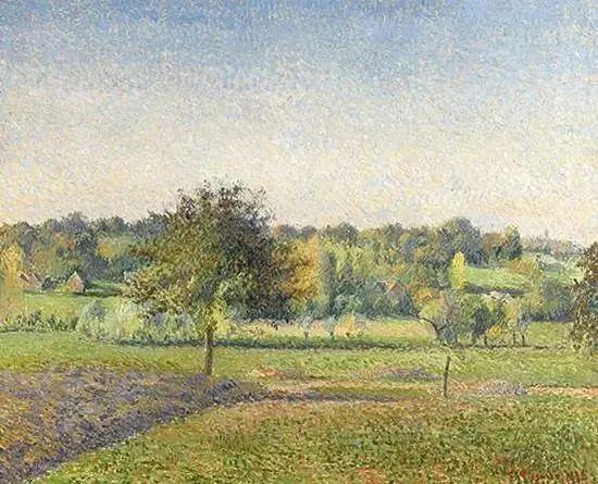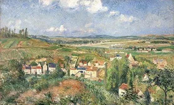 毕沙罗的风景画笔触沉稳均匀,色块厚重饱满,在冷暖色调过度上很自然,让观者百看不厌。他笔触动感的画法,是印象派中艺术风格之一。