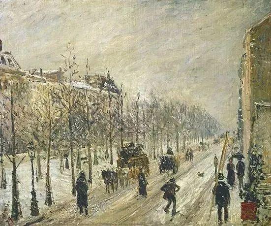 毕沙罗初到巴黎万国博览会,就醉于浩如烟海的美术名作,其中最令他激动的是柯罗的风景画,从此倾心风景写生。