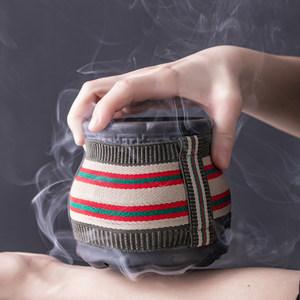 火龙罐灸是源于民间的一种古老灸法,它集推拿(改善皮肤呼吸,增快血液循环)、刮痧(扩张毛细血管,增加汗腺分泌,改善微循环)、艾灸(促进炎症吸收,活血化瘀,抗氧化)三法为一体。火龙罐由玄石加紫砂混合高温烧制而成,罐体内有艾绒压制而成的艾柱,罐口花瓣式的独特设计镀上黄金白银,金补银泻,祛除病气,点燃艾柱成为真正的火罐,故取名“火龙罐”。