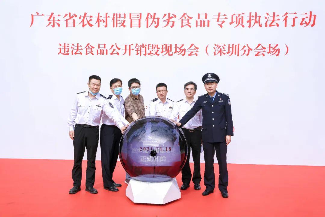此次销毁活动,是根据国家市场监管总局、公安部、农业农村部、商务部、中华全国供销合作社等五部门统一部署开展。11月18日,全国多地同步开展销毁工作,深圳市分会场由深圳市市场监管局承办,深圳市公安局、深圳市商务局等部门协办。销毁物品为深圳市市场监管局在农村假冒伪劣食品专项执法行动中罚没的违法食品,均采取拆解、填埋、焚烧、化浆等符合环保的方式进行销毁。