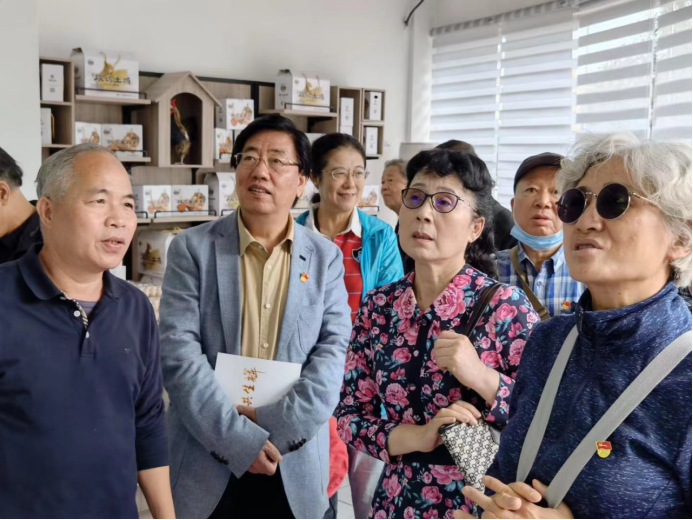 ↑深圳新闻界老同志参观双坑土鸡合作社。(李广东 摄)