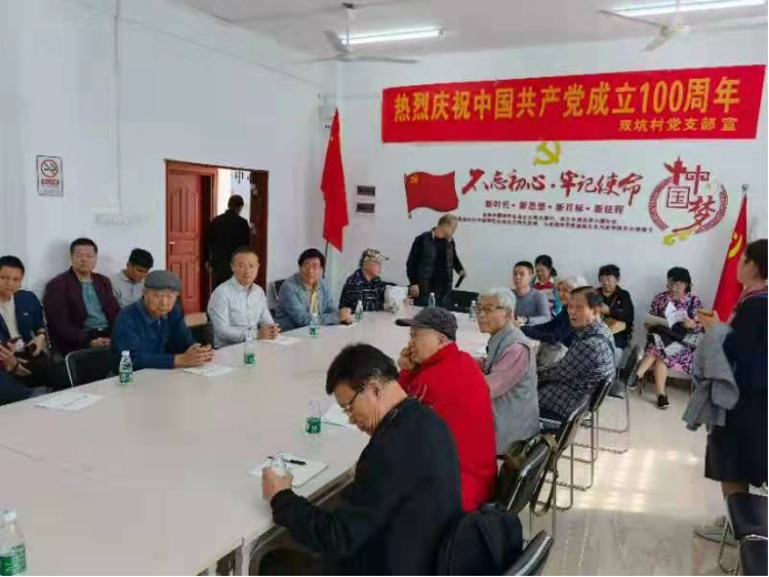 ↑深圳新闻界老同志与双坑村村委会负责人交流座谈。(李广东 摄)