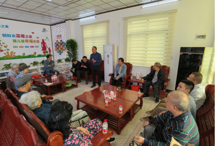 ↑深圳新闻界老同志与雅色村村委会负责人交流座谈。(李广东 摄)