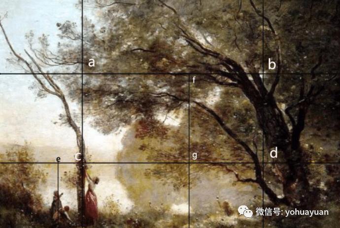 法国巴比松画派代表人物柯罗,在其风景画创作中大量运用九宫格构图方法。