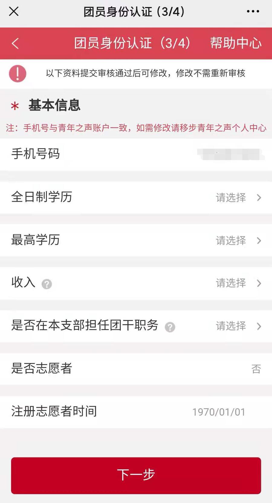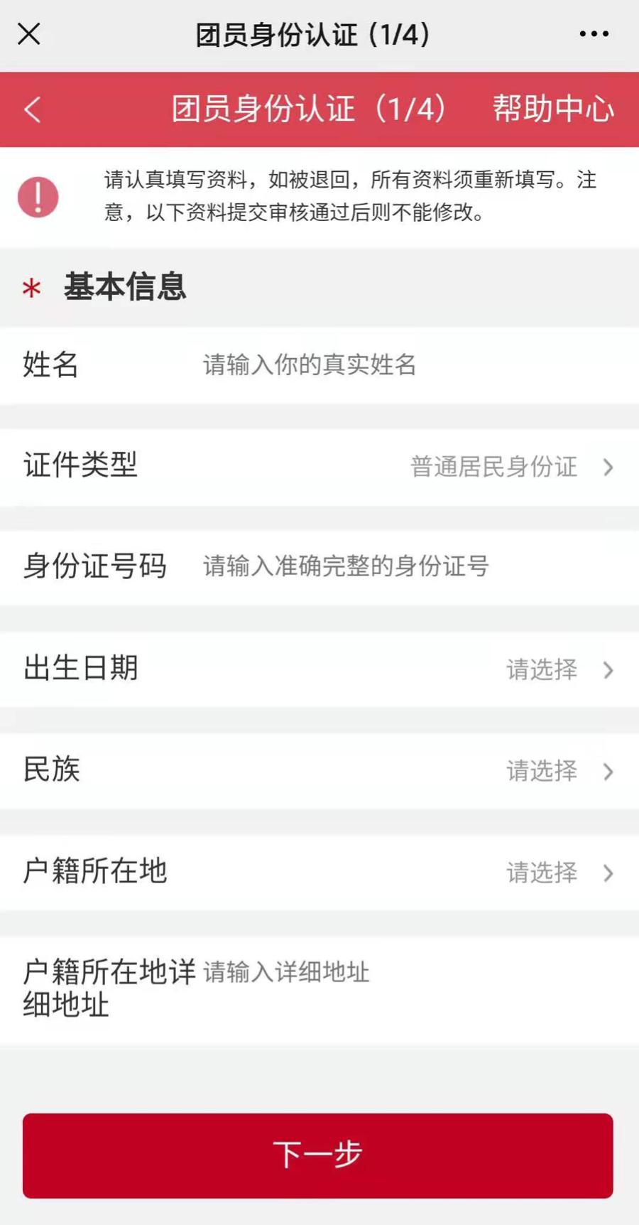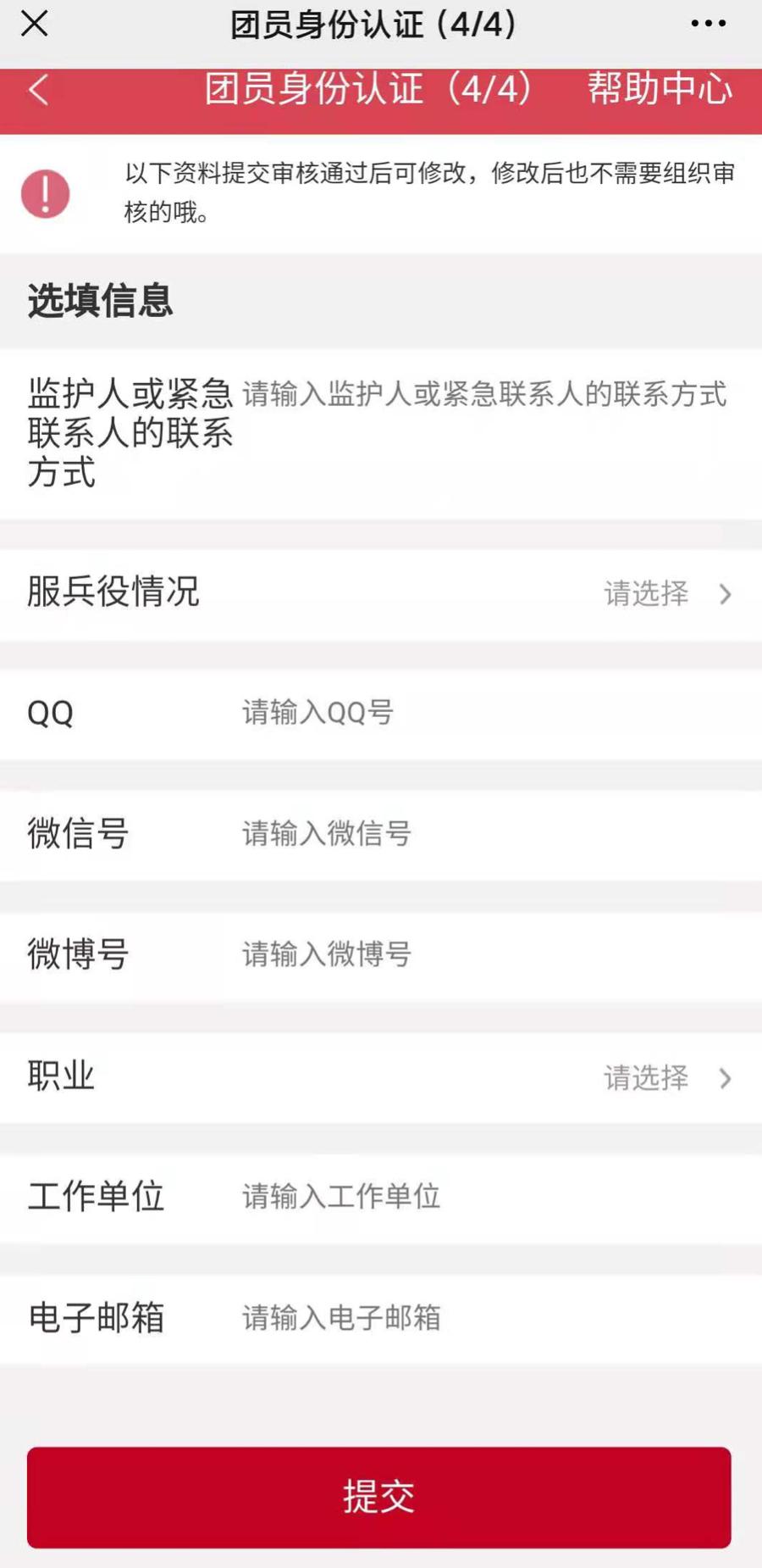 (2)根据系统流程据实填写个人信息,点击“提交”,等待转入团组织审核。