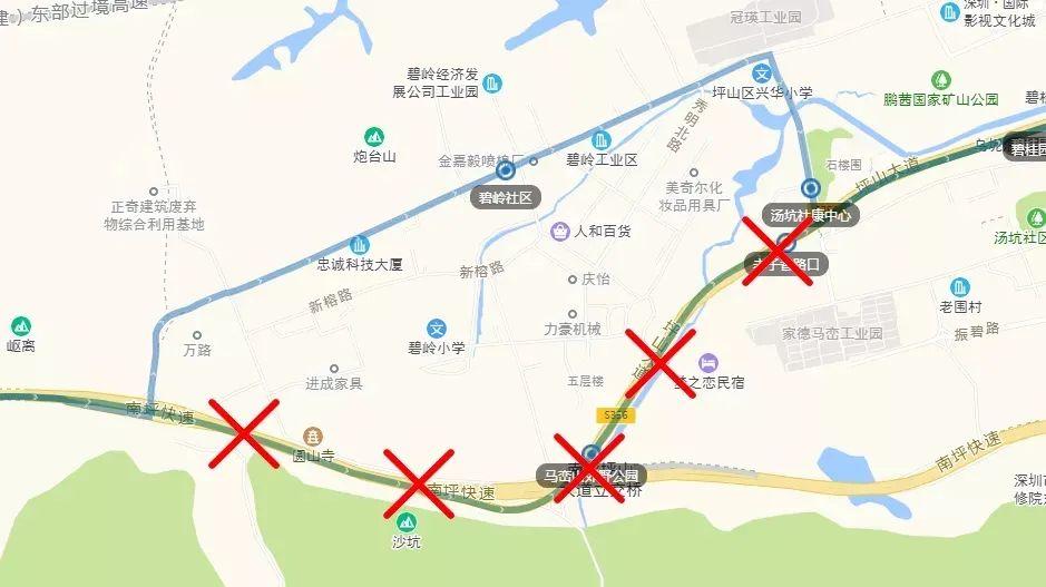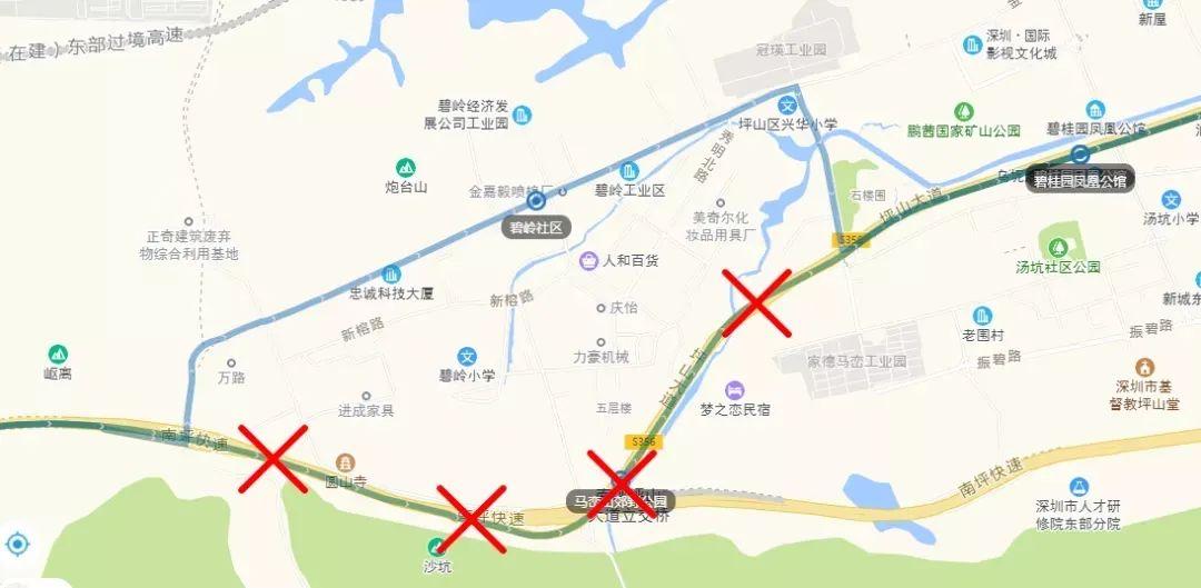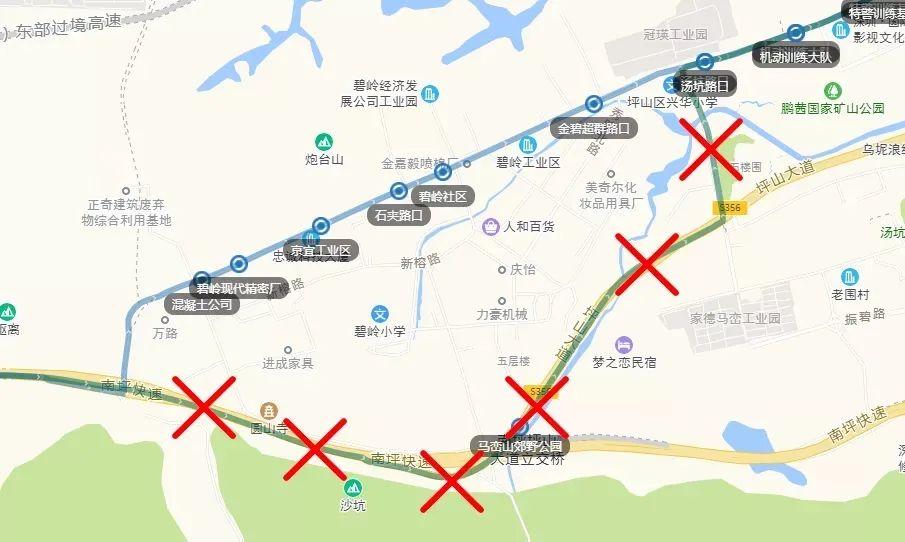 往深圳坪山综合交通枢纽公交场站方向增加“混凝土公司、碧岭现代精密厂、京宜工业区、石夹路口、碧岭社区、金碧超群路口、碧岭汤坑路口、汤坑社康中心”等8个单边公交停靠站,取消“马峦山郊野公园”1个单边公交停靠站。