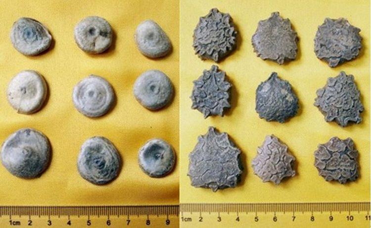 马钱子扁圆形纽扣状,通常一面微凹,另一面微隆起,表面密被茸毛,茸毛呈棕灰色或灰绿色质坚硬。