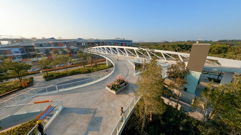 1月28日,备受瞩目的滨海廊桥正式面向市民开放,在这里可以体验到海连城的全新景观。滨海廊桥是由宝安区委区政府打造的重要民生工程,分为地上、地面、地下三层,全长两公里。它是全国首个“空中、地面、地下”三位一体城市连廊,犹如一条穿行于绿海中的白色巨龙,横亘在宝安中心区。