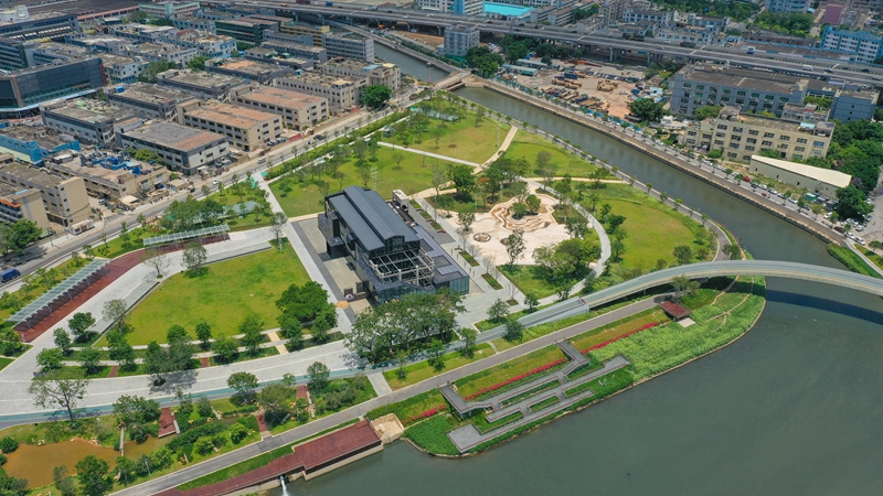公园经过水岸重联、弹性再生、文化焕新等一系列措施,昔日臭水沟变成网红打卡地。置身公园内,蚝心虹桥、水闸观景台、花廊驿站、文创展馆……一步一景,疏密有致的广场空间无缝衔接,现代化的都市气息与本土海洋风情交相辉映。