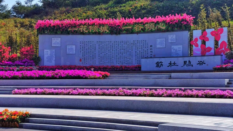 簕杜鹃谷是目前全国面积最大的簕杜鹃生态科普基地,公园内种植有118种不同品种簕杜鹃花,其中有45种珍稀少见的品种。另外,公园内架设了多条簕杜鹃廊,其中最长的一条188米,是全国最长的簕杜鹃主题文化长廊。园区内的簕杜鹃科普馆是我国首个以簕杜鹃花为主题的科普馆,建筑面积1293平方米。