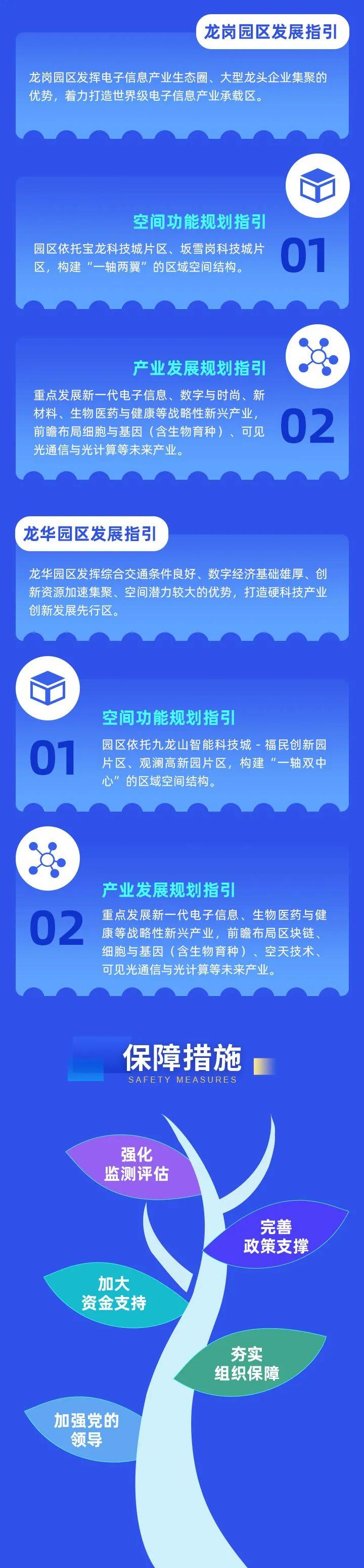● 龙华园区发挥综合交通条件良好、数字经济基础雄厚、创新资源加速集聚、空间潜力较大的优势,打造硬科技产业创新发展先行区。依托九龙山智能科技城—福民创新园片区、观澜高新园片区,构建“一轴双中心”的区域空间结构。