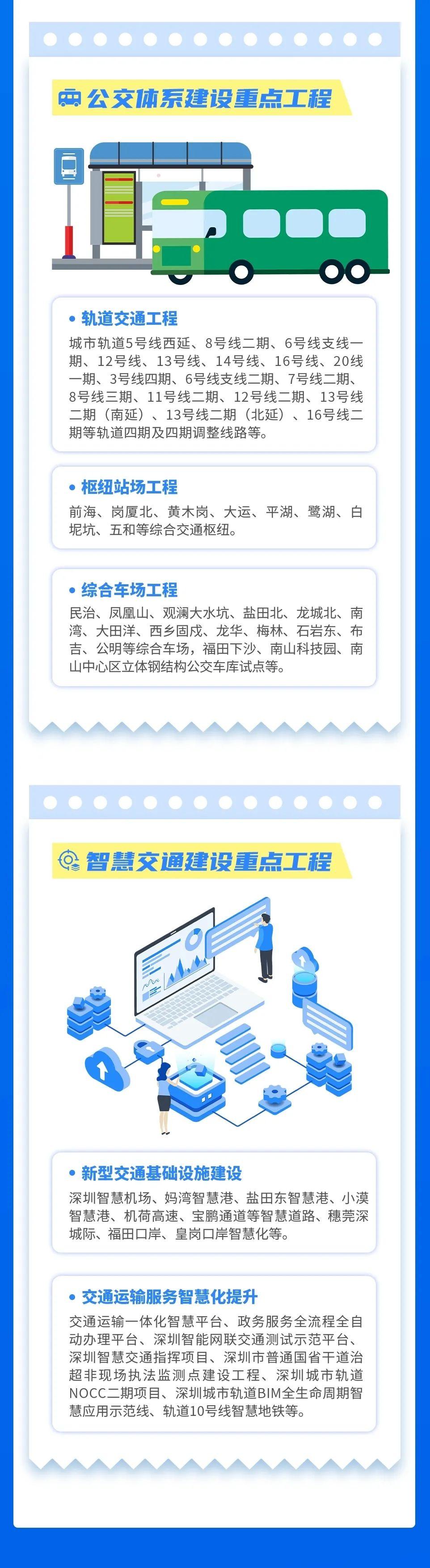2月23日,深圳市交通运输局正式发布《深圳市综合交通 " 十四五 " 规划》(以下简称《规划》)。《规划》提出两阶段发展目标,面向2025年,基本建成 " 开放畅达、立体融合、低碳智慧、安全宜行 " 的交通强国城市范例,"12312" 出行交通圈和 "123" 快货物流圈更加完备;面向2035年,率先建成安全、便捷、高效、绿色、经济的现代化综合交通运输体系,全面建成 " 三个 1000 公里 " 骨干交通网,实现 " 人享其行、物畅其流 ",成为全球交通运输创新引领者。