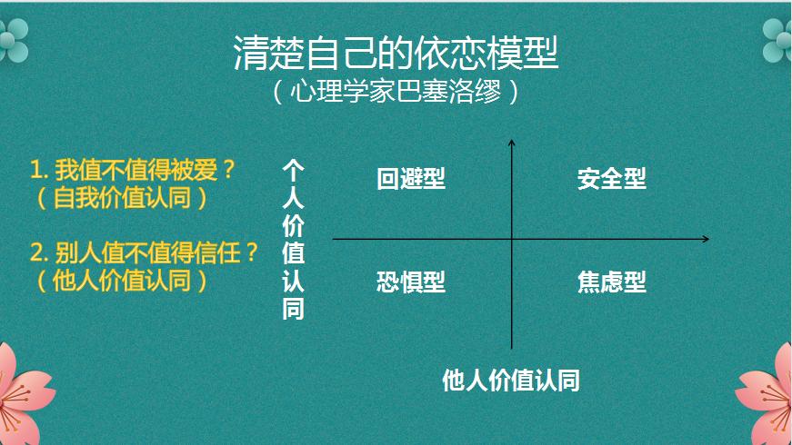老师讲解了脱单的心理历程及恋爱时的注意事项,还通过罗伯特.斯腾伯格爱情三角形理论、巴塞洛缪四种依恋模型论,分析亲密关系依恋的类型、爱情观等帮助大家刻画心中的另一个她/他的形象,从而知道自己要找的理想对象类型;并通过PUA和杀猪盘讲解,提醒恋爱过程中可能会遇到的各种问题、误区以及如何避免和应对,让居民朋友更加了解自我,明确自己的择偶标准,树立自尊自信、健康积极的婚恋观。