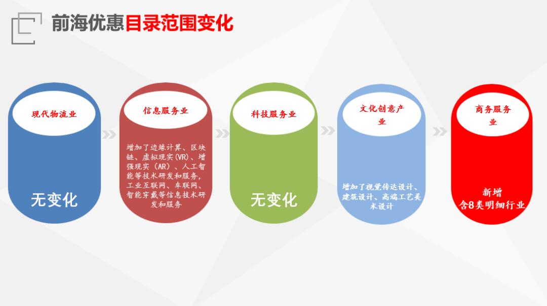 港资企业可根据优惠目录自行判别进行申报。总的来说,前海税收优惠政策的优惠范围更广、优惠门槛更低、优惠享受更易,让更多香港企业受惠。