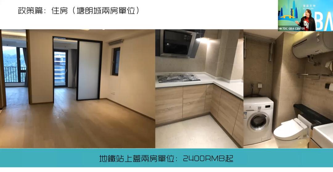 前海香港商会副会长、广东省香港商会深圳委员会委员郑思怡Sisley分享在前海的生活经验称,另一个向港人配租的人才公寓塘朗城的600尺单位,月租金仅需2400元起,家电配套已十分齐全。