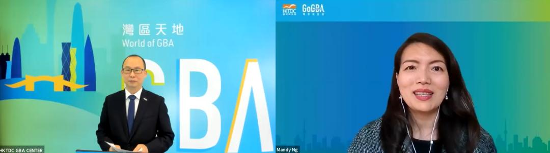 香港贸发局华南首席代表吴文慧在线上研讨会致辞,香港贸发局深圳代表曾沂靖主持会议