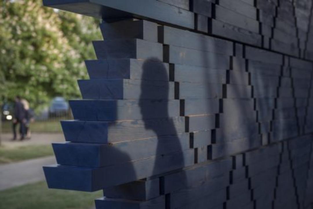 木制模块墙系统由预制木块组装成带有小孔的三角形模块组成,为建筑围护结构带来轻盈和透明感。弯曲的墙壁被分成四个片段,允许四个独特的访问点进入凯雷的蛇形画廊。