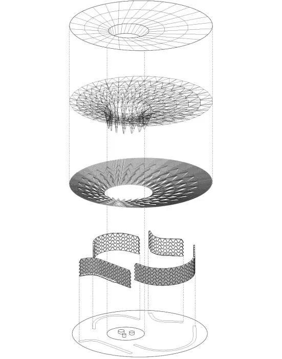 “我希望人们可以通过不同的方式使用该展馆,有不同的情感和触动。白天时,他们可以和朋友或家人来这里喝咖啡、放松身心。当有重大事件或特殊表演时,展馆可以瞬间化身为一个戏剧舞台。如果突然下起了雨,人们可以聚集在展馆里躲避,静静地看着雨水从中央孔落下。我希望展馆复杂的建筑结构可以给参观者带来惊喜与启迪。”