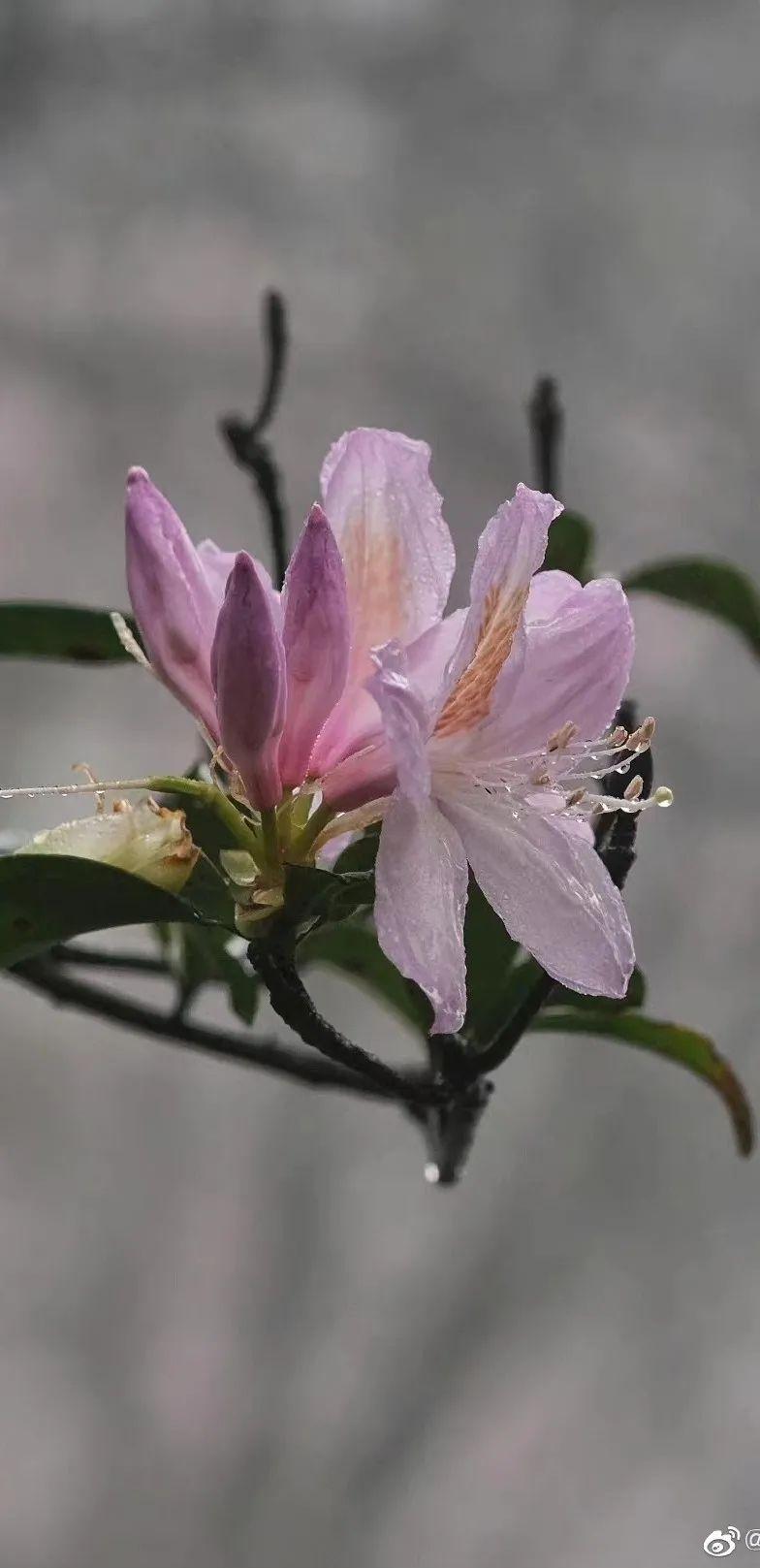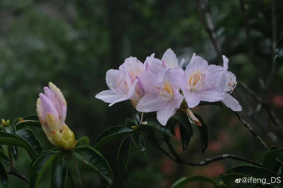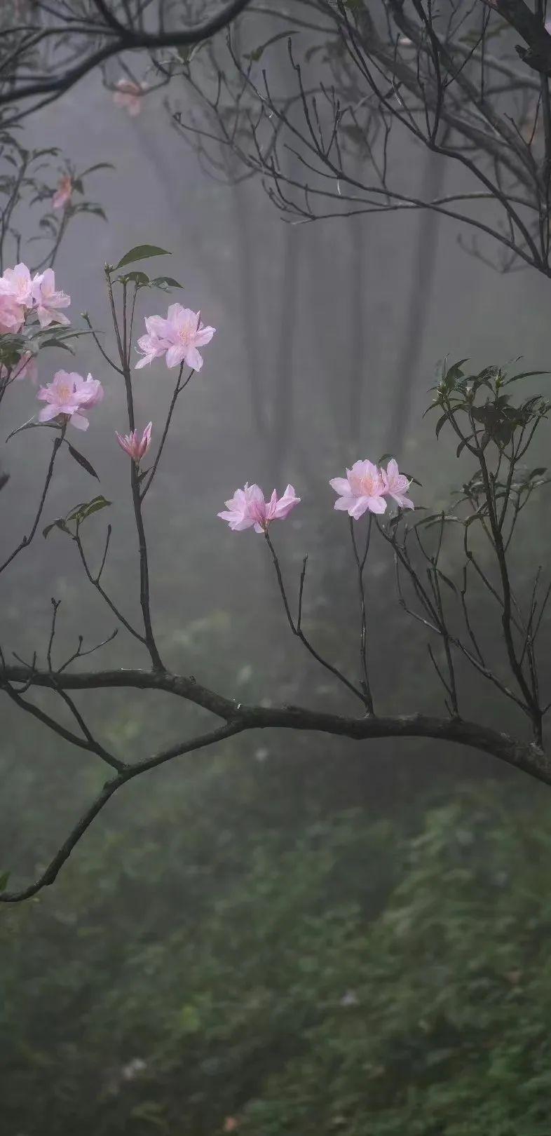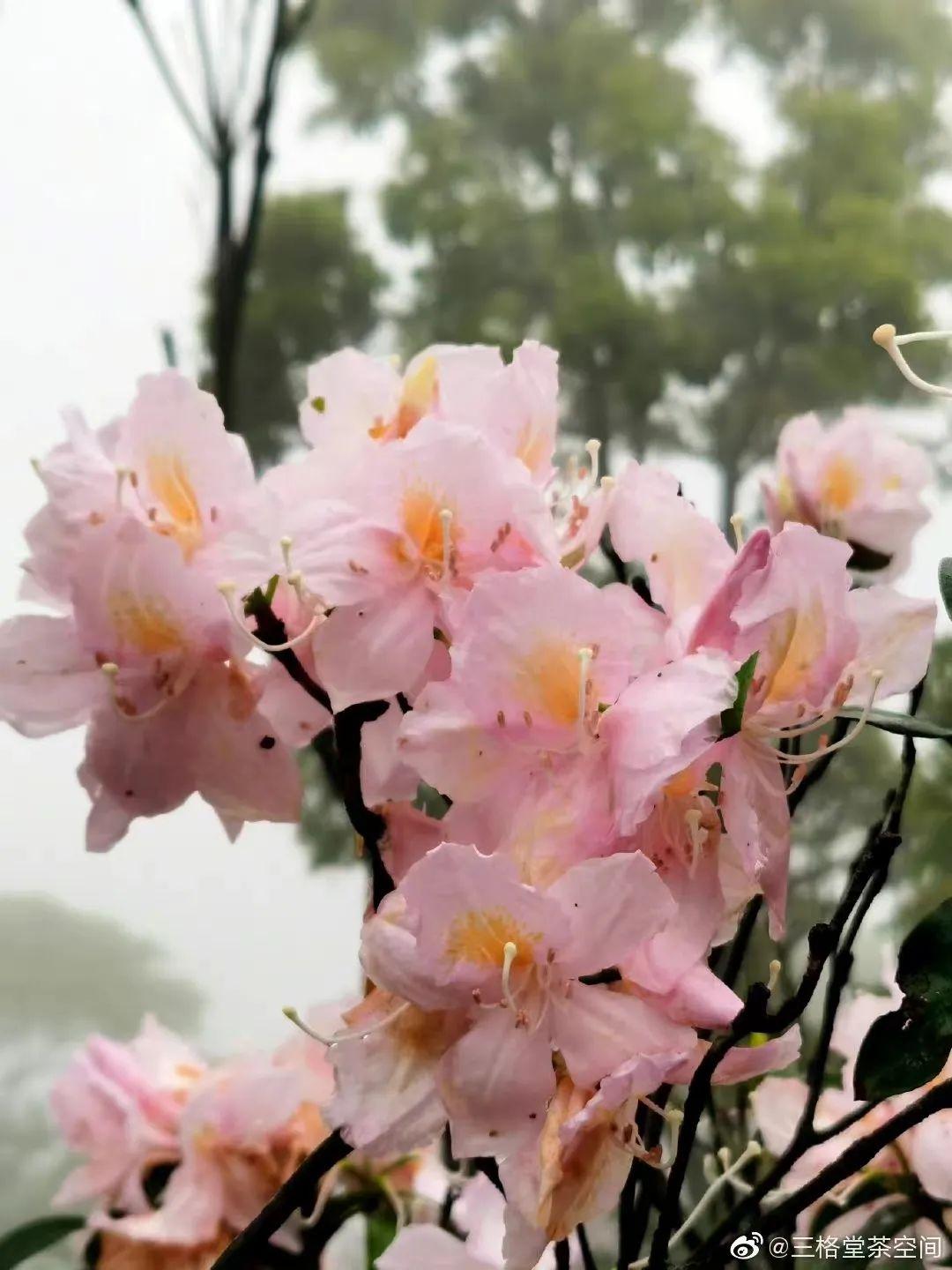 掩着朦胧的水雾,毛棉杜鹃在翠绿山谷中铺陈伸展,悄无声息又绚丽无比。