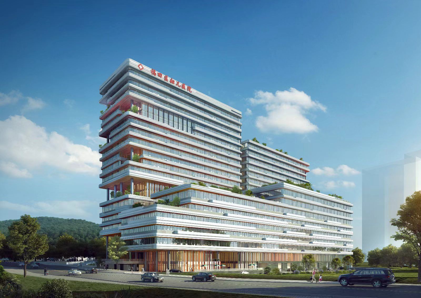 据了解,福田区妇儿医院项目位于深圳市福田区,紧邻深圳中心区,是福田区“十三五”规划重大医疗民生工程,安托山片区最重要的大型公建项目。项目总建筑面积14.26万平方米,建筑设计根据项目地理位置,采用独特的台阶地形设计,体现了“绿色生命阶梯“的设计理念,寓意生命从“孕育-出生-成长”不停向上攀爬的历程,建成后将是一所集医疗、保健、教学、科研和预防于一体高品质的三级甲等妇幼保健院,将成为福田区的城市新名片、深圳绿色医院的新标杆。