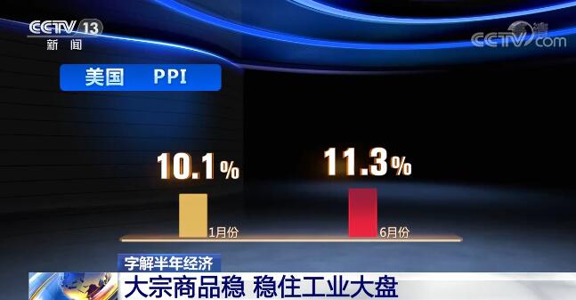 总台央视记者孙渊:说到大宗商品的价格,我们首先能想到的就是与其密切相关的工业生产者出厂价格,也就是平时我们说的PPI,从这个图上可以看到,上半年,PPI呈现了逐月回落的态势。