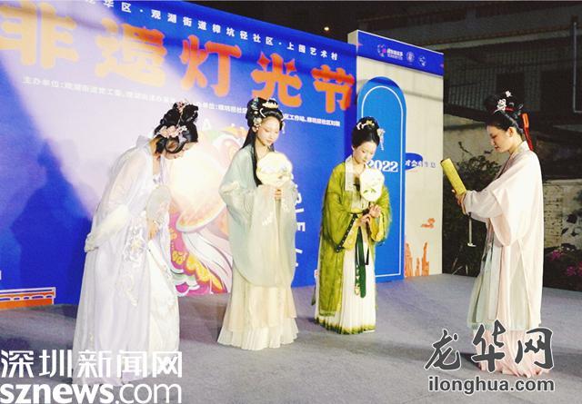 读特客户端·深圳新闻网2022年8月17日讯(记者 胡安坤 通讯员 汤令谊 陈思敏)8月15日,龙华区观湖街道上围艺术村首届非遗灯光节炫目上演,梦幻璀璨的灯光、精妙绝伦的表演、种类繁多的义卖,让居民和游客得以在这个百年老村近距离感受非遗之美和传统文化之魅。