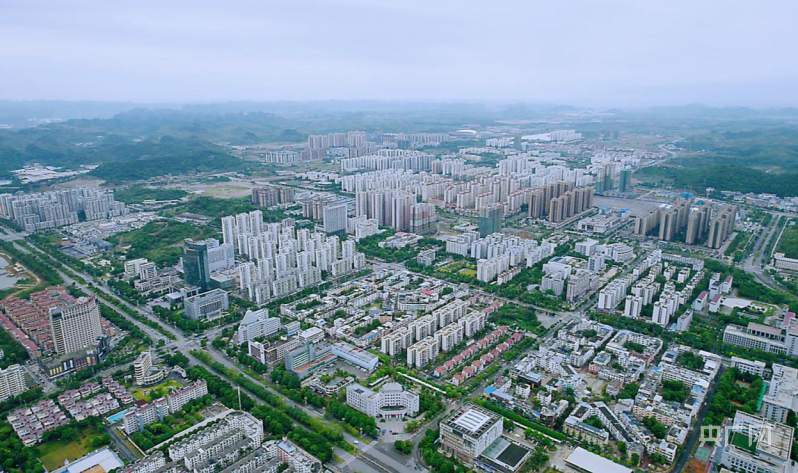 掩映在山林绿树间的崇左市区(央广网发梁章晖摄)