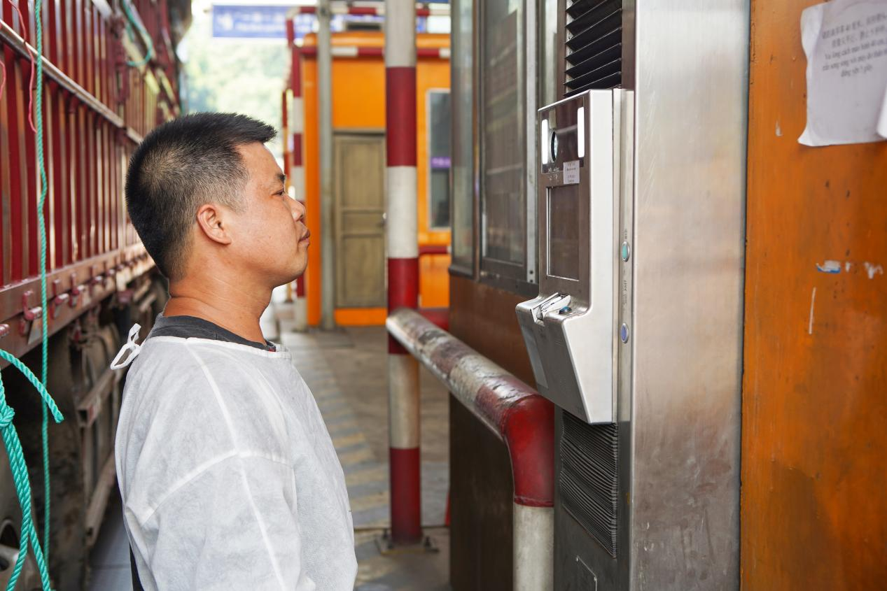 在友谊关口岸,准备通关的货车司机在进行人脸识别(央广网发崇左片区管委会供图)