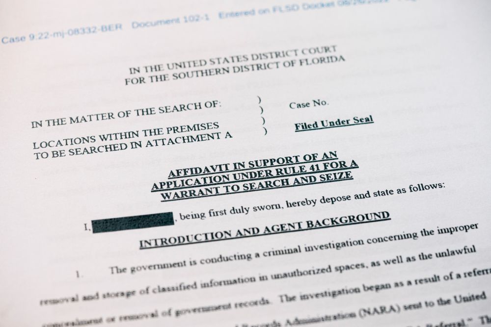 这是8月26日拍摄的美国联邦调查局申请搜查前总统特朗普住所海湖庄园时向法院提交书面证词的部分内容。新华社记者 刘杰 摄